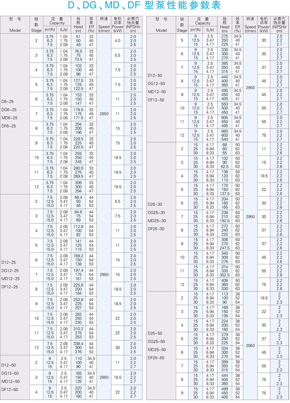 DG型高吸程單吸多級熱水離心泵供輸送清水或物理及化學(xué)性質(zhì)類似于清水的其他液體之用。介質(zhì)溫度不大于105℃,適用于小型鍋爐給水或輸送熱水和類似熱水的介質(zhì)。也可根據(jù)用戶要求制作介質(zhì)溫度不大于150℃場合。
