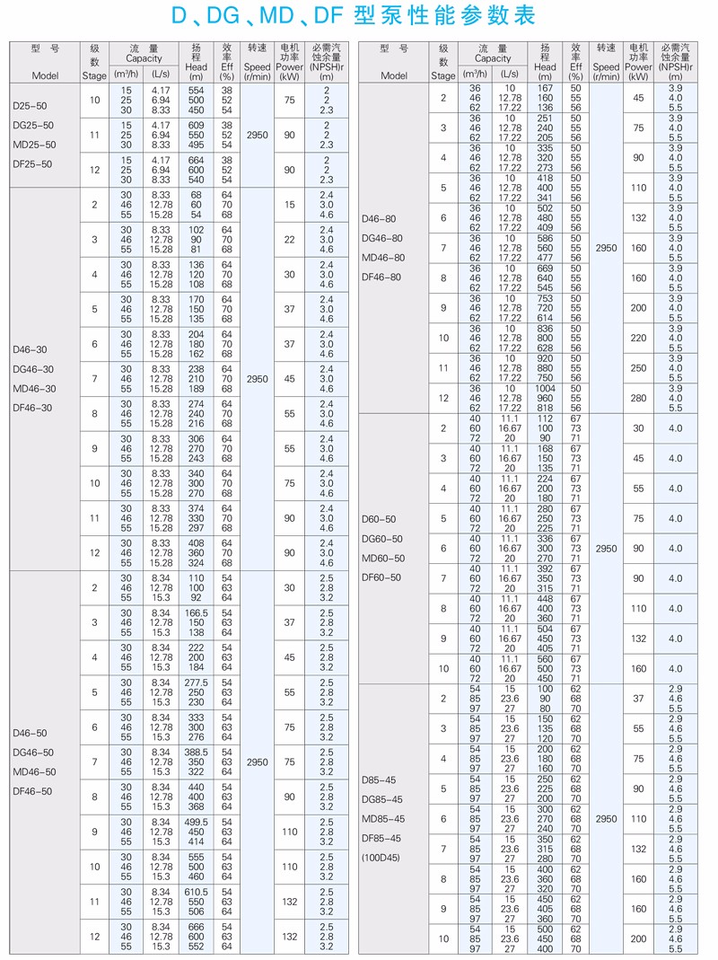 DF型高吸程單吸多級那腐蝕泵供輸送溫度﹣20℃一105℃不含固體顆粒,有腐蝕性的液體。主要用于化工、石油、冶金、輕工、印染、制藥、環(huán)保、海水淡化。海上采油及礦山等工業(yè)部門。